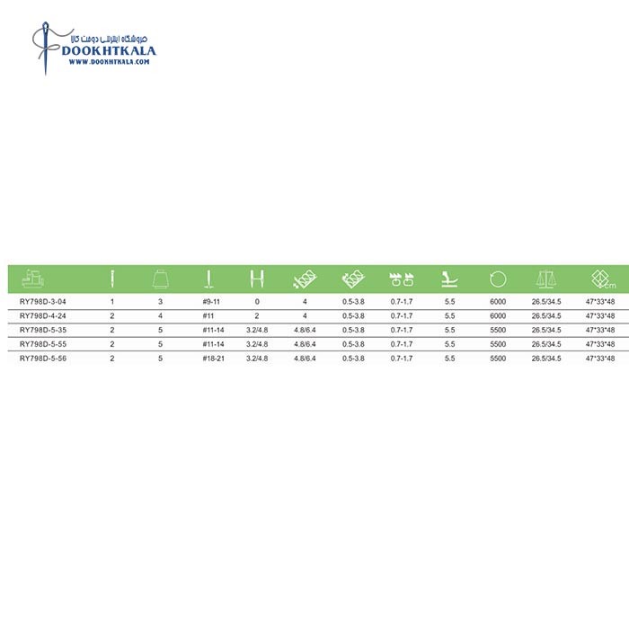 • ضخامت دوخت (میلیمتر) : ظریف تا متوسط