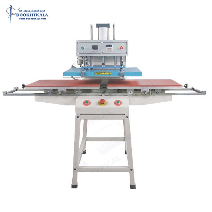 این دستگاه پرس حرارتی دارای سیستم بادی است.