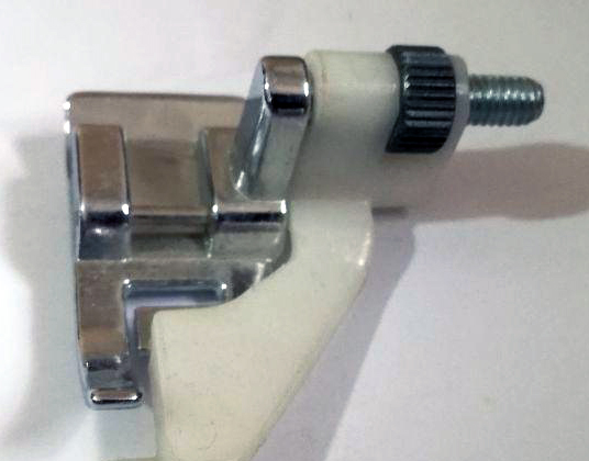 این پایه کاربردهای فراوانی مثل پس دوزی پایین شلوار و دامن و...دارد.برای استفاده از این پایه ، به مقدار حدود 4 الی 5 سانت ،پارچه زاپاس نیاز است.سمت پشت پارچه ،روی کار قرار می گیرد.مقدار زاپاس را از سمت راست ،به مقدار یک ونیم الی 2 سانت تا کرده،از سمت روبروی آن نیز به همین مقدار تا کرده طوری که تا نیمه تای قبلی را بپوشاند.آن را زیر پایه قرار داده بطوری که زائده ،زیر تای دوم قرار بگیرد.دوخت باید طوری تنظیم شود که وقتی با چرخاندن توپی در منتهی الیه سمت چپ،تنها  تاری از پارچه را بگیرد.کار را از زیر چرخ درآورده و پارچه را برگردانید.نکته:برای تنظیم پایه با لبه کار بایداز پیچ کنار پایه استفاده کرد.بدین صورت که اگر سوزن بیش از حد روی پارچه قرار گیرد،پیچ را سفت کرده تا پایه به سمت چپ حرکت کند و بالعکس،یعنی اگر سوزن روی تای دوم قرار نمی گیرد،پیچ را شل کرده تا پایه به سمت راست حرکت کند.