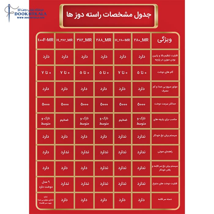 در میان مدلهای پرطرفدار، میتوان به MR-280 و MR-280H اشاره کرد که به ترتیب برای دوختهای معمولی و دوخت ضخیم طراحی شدهاند. هر دو مدل دارای صفحه نمایش دیجیتال برای تنظیمات پیشرفته و دقت بالاتر در عملکرد هستند.